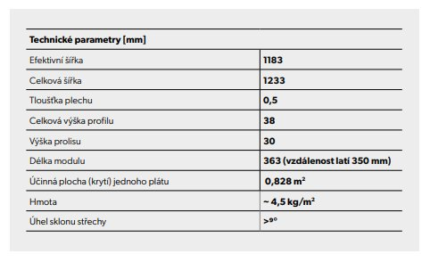 Efektivní šířka plechu (krycí šířka): 1183 mm