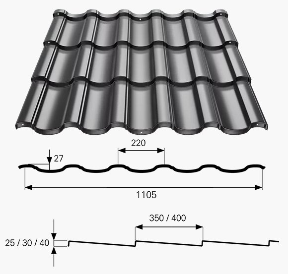 Efektivní šířka plechu (krycí šířka): 1105 mm