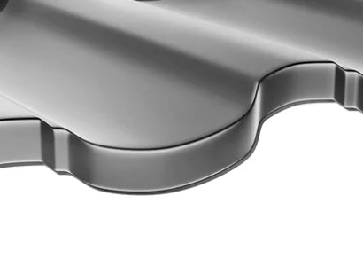 Střešní tašky STIGMA jsou řezané v souladu s tvarem vlny, díky čemu je vodorovné spojení listů méně viditelné.