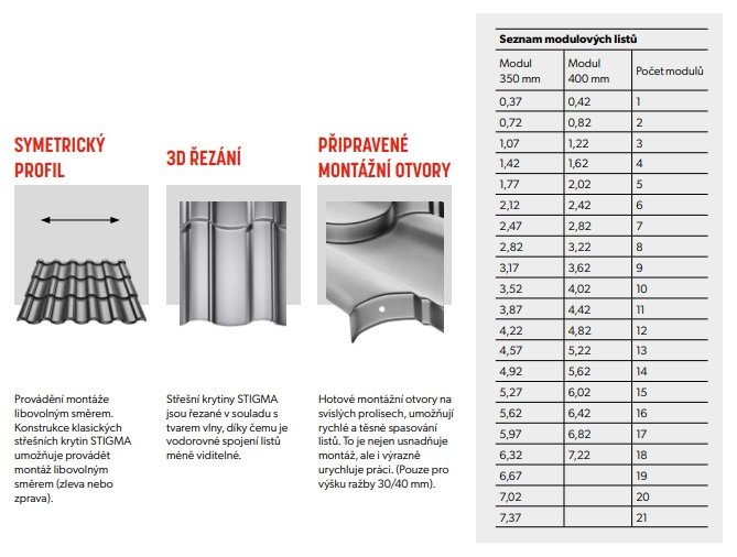 STIGMA jsou klasické taškové střešní tašky, řezané na míru, a proto dokonale přizpůsobené konstrukci střechy. Díky použitým technologickým řešením je instalace jednodušší a nenápadná.